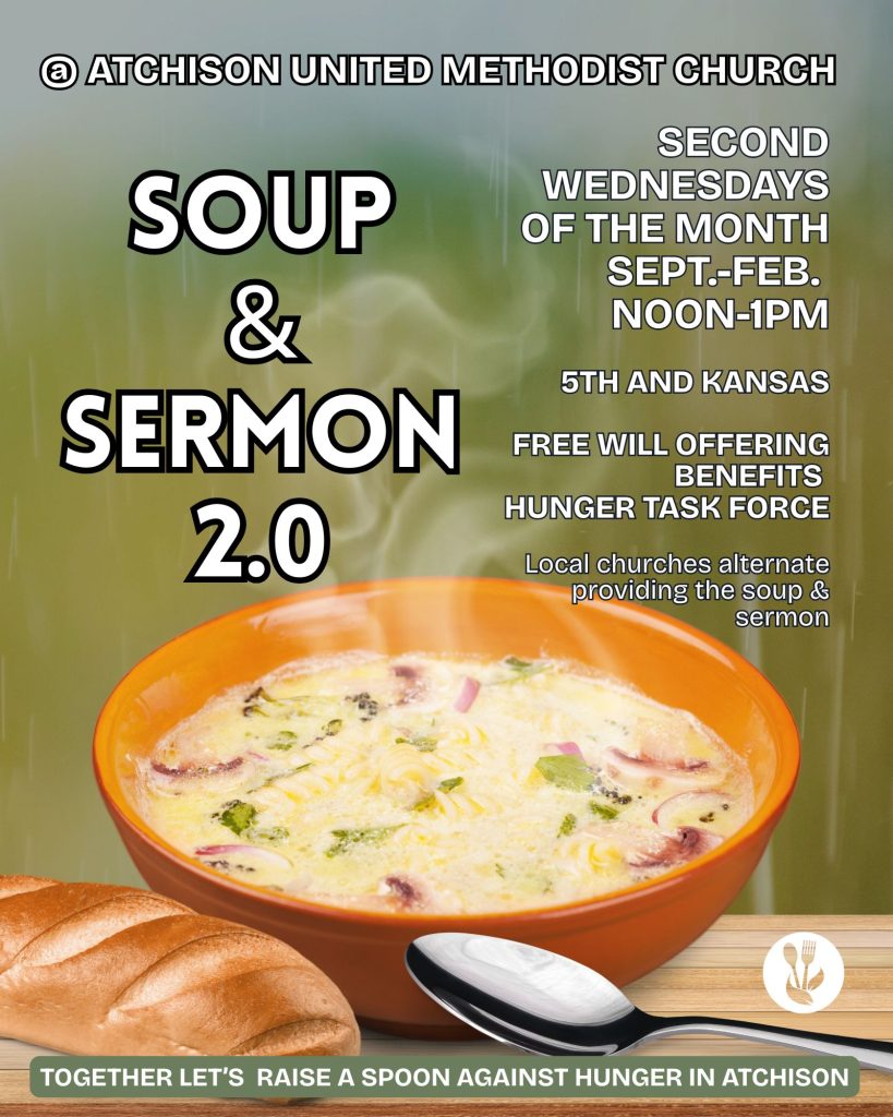 The long time Lenten tradition is having a new season! Join the community for a power lunch September-February on the second Wednesday of the month at noon-1pm. Enjoy a bowl of soup, a message and music from one of many local churches. A free will offering benefits Hunger Task Force, an ecumenical effort to support local families.